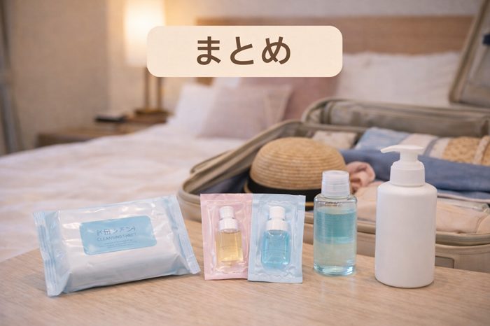 次の旅行では、ぜひ化粧落としもチェックリストに入れて、安心して過ごしてくださいね。