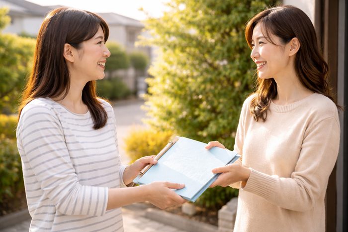 | 手渡し | 在宅が分かっている家庭。普段から挨拶を交わしている間柄。 | 忙しい時間帯を避ける。長話をしない。 |
