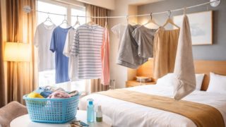 ホテル・旅行の困りごと ホテルで洗濯物を干せないときはどうする?限られた部屋で乗り切るコツを徹底解説